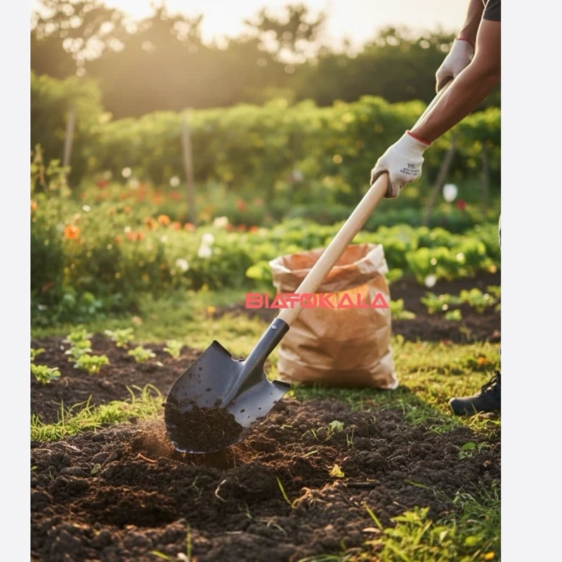 نوع محصول: بیل دستهدار بزرگ فلزی، مناسب کشاورزی و باغبانی حرفهای