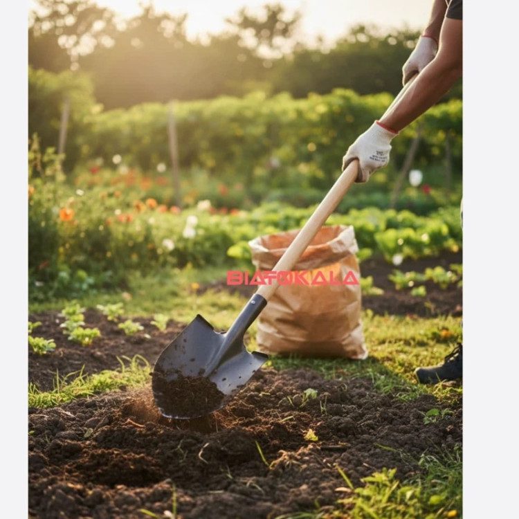 نوع محصول: بیل دستهدار بزرگ فلزی، مناسب کشاورزی و باغبانی حرفهای